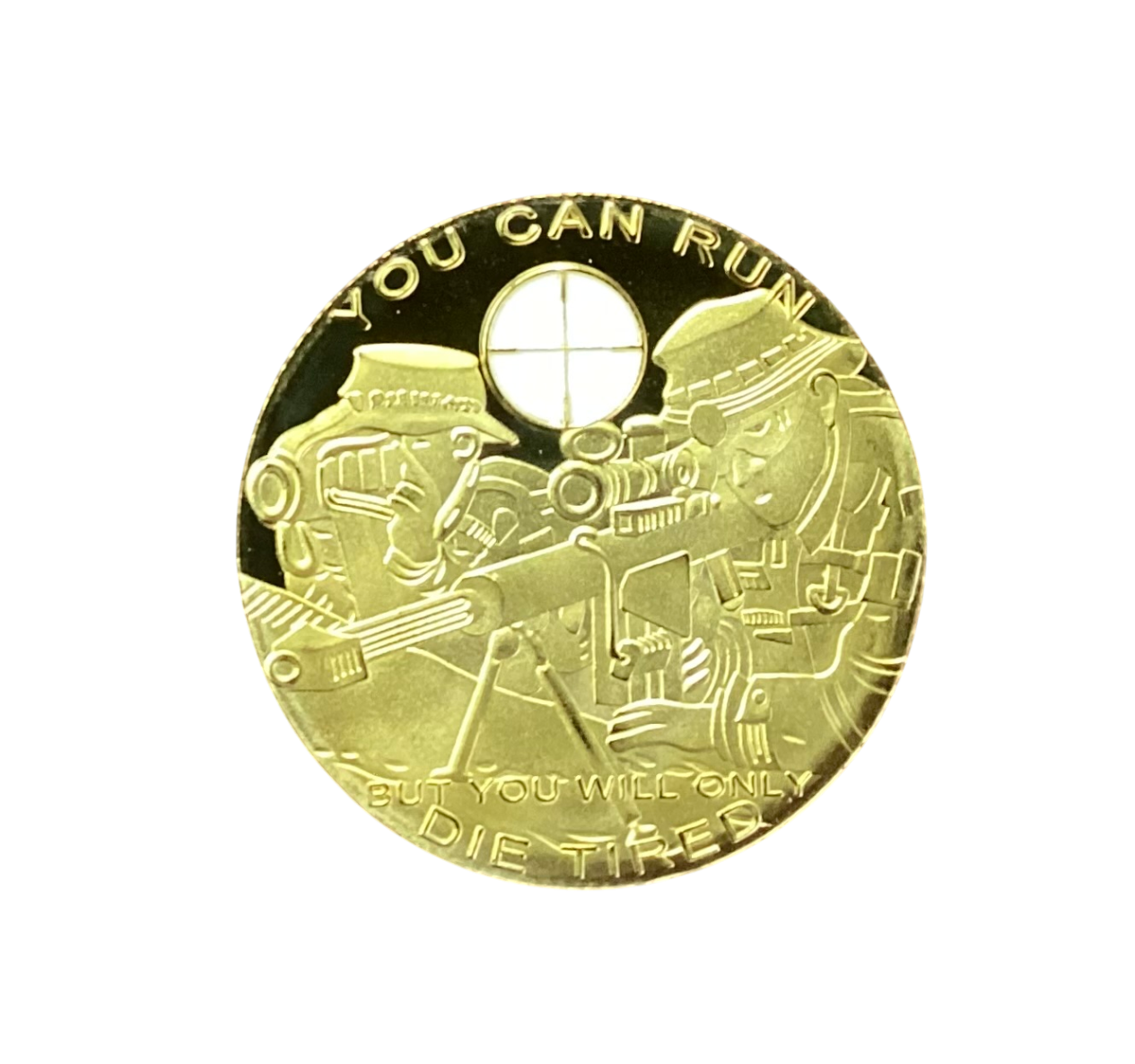 Out Of StockBrass Coin “From a Place You Will Not See, Comes a Sound You Will Not Hear” “You Can Run But You Will Only Die Tired”
