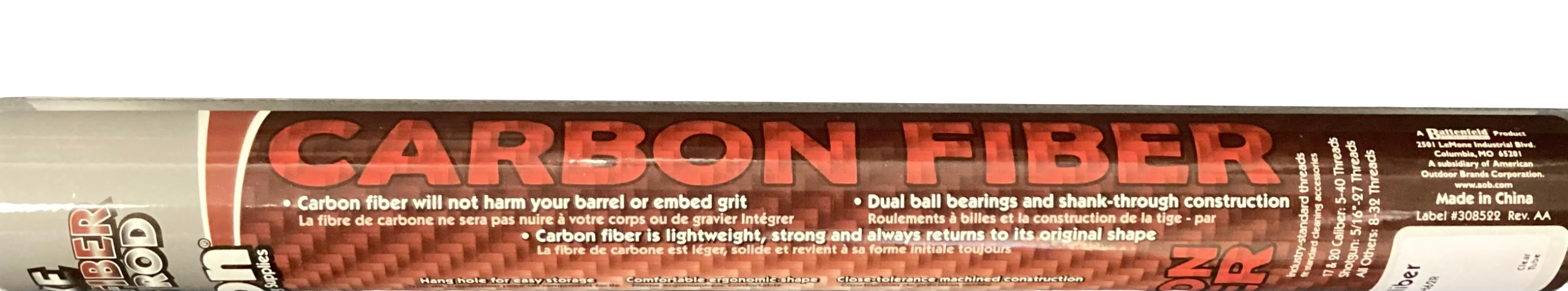 Out Of StockDeluxe carbon fibre cleaning rod, bearing operated (less binding under pressure), reinforced tang, 40” long, 27-45 calibre, 8-32 threading
