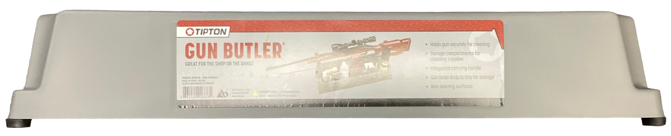 Out Of StockGun Butler Great for Shop or Range Holds Gun Securely for Cleaning Storage compartments Carry handle and Gun Forks Non-marring surfaces Approx 23x9x4.5 inches