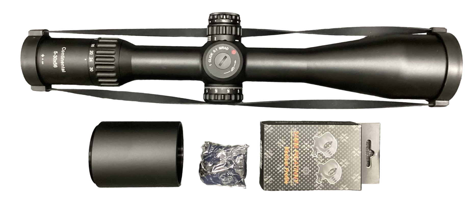 Out Of StockVector Optics 5-30x56 FFP Illuminated 34mm Rings and sunshade included Zero Stop 90% Light Transfer